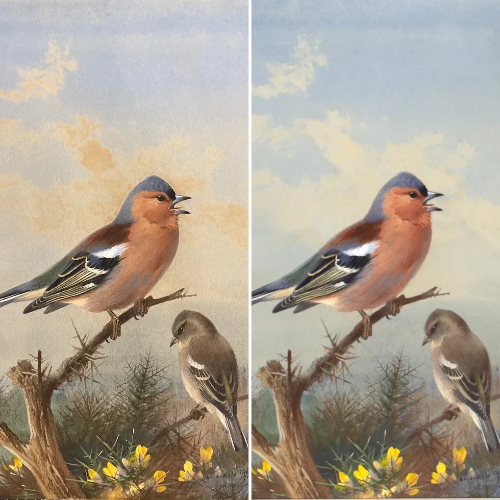 Our conservation and restoration services address various issues affecting artworks on paper. We undertake treatments such as cleaning to remove dirt and surface marks, repairing tears and losses, and flattening cockled or rolled papers. We also specialise in removing old, acidic mounts and backings, as well as treating stains and foxing to restore the artwork's appearance and structural integrity.