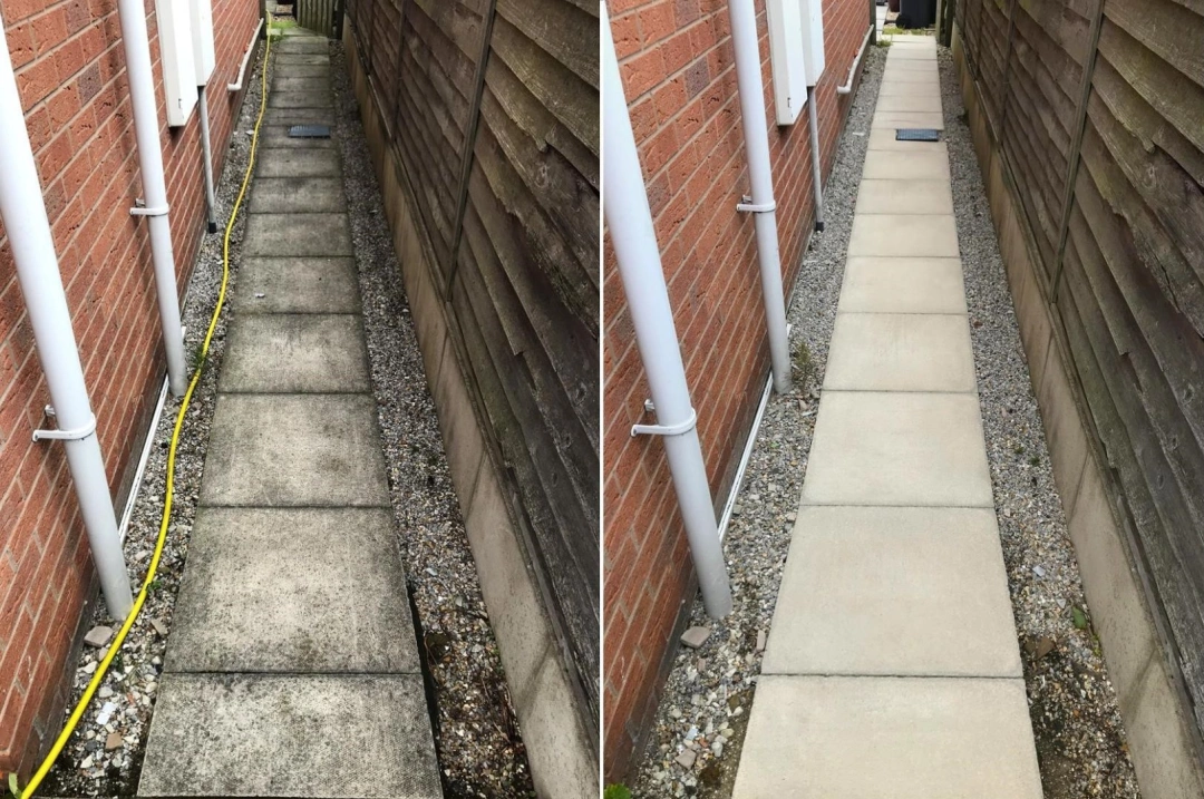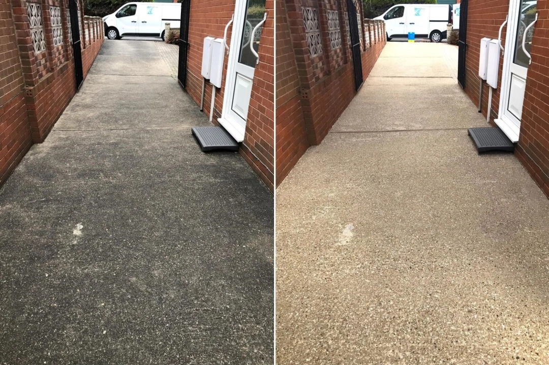 After cleaning, we provide a biocidal treatment to prevent the reformation of algae, moss, and bacteria. For block paving, we also re-sand with kiln-dried sand containing a natural weed killer. Our comprehensive approach ensures your outdoor areas remain clean and protected for an extended period.