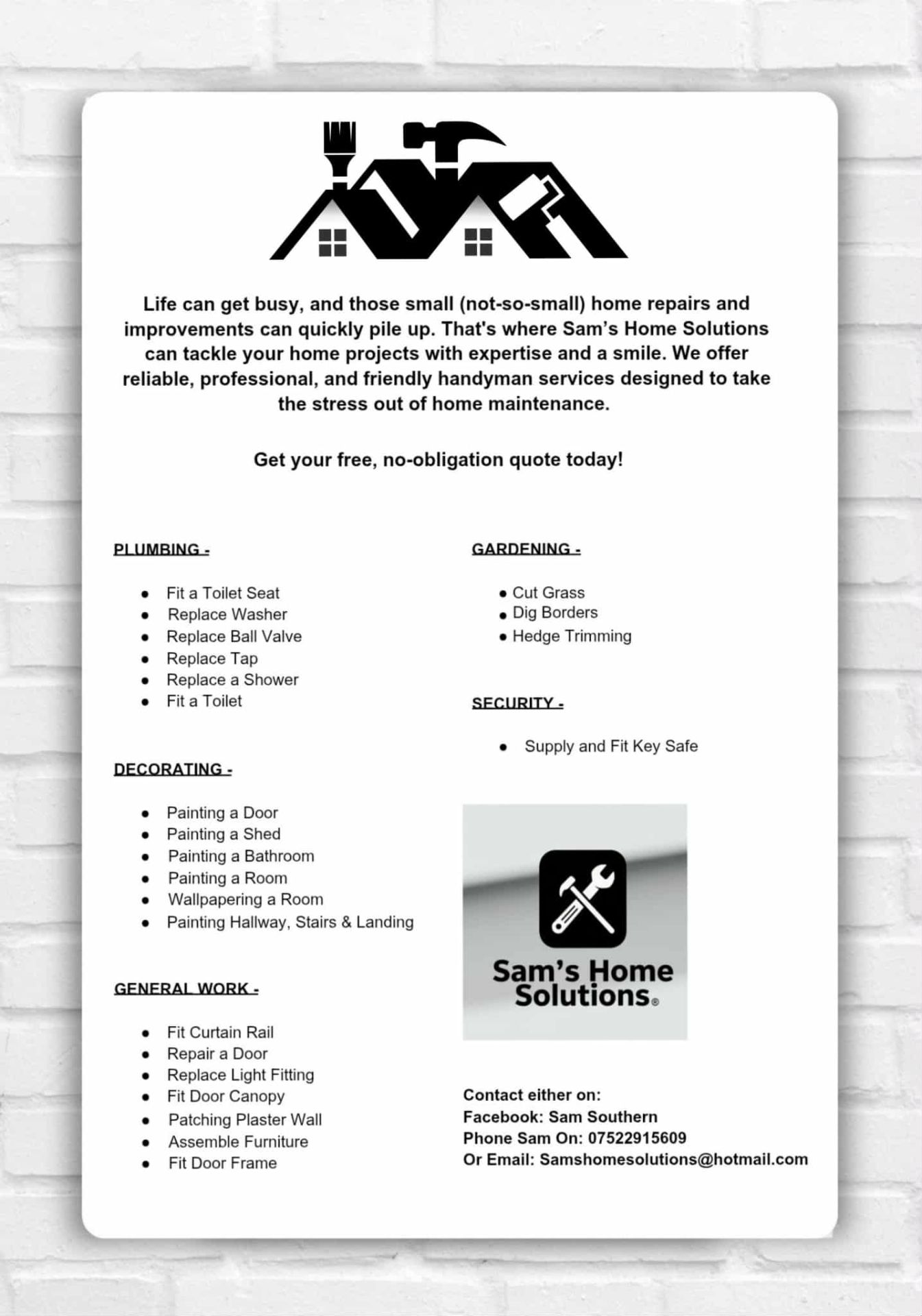 Handyman work and garden work.