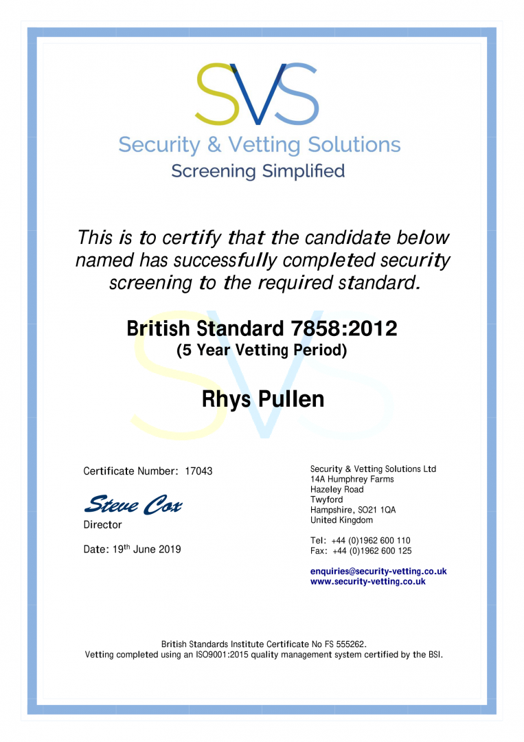 At Silverlight Security, we prioritise safety and professionalism. Our works are insured, and we hold the following accreditations: